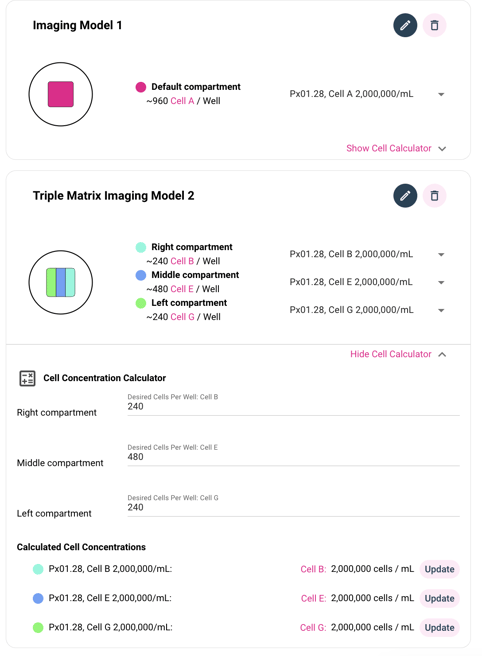 - Define a desired number of cells per well and see the total number of cells required update automatically